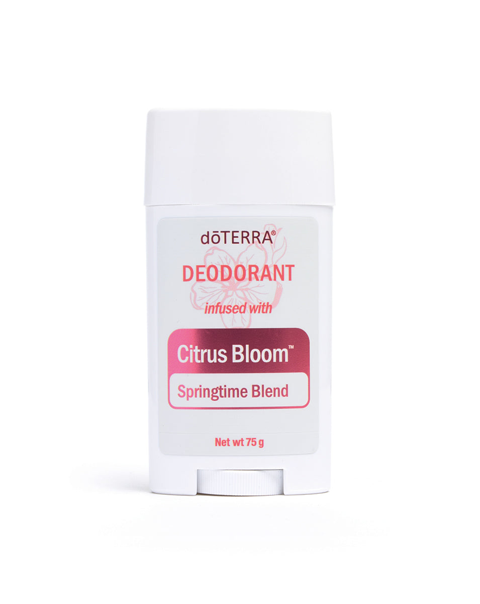Ein ideales erfrischendes Deodorant für den täglichen Gebrauch! Das mit doTERRA Citrus Bloom Blend angereicherte Citrus Bloom Deodorant enthält eine proprietäre Mischung aus ätherischen Ölen, Backpulver und Tapioka, die synergetisch wirken und für Frische sorgen. Ätherische CPTG-Öle aus Süßorange und Grapefruit sorgen für eine belebende Zitrusnote, während Lavendel, römische Kamille und Magnolie für den Duft frischer Schnittblumen sorgen und das Selbstvertrauen den ganzen Tag über fördern.