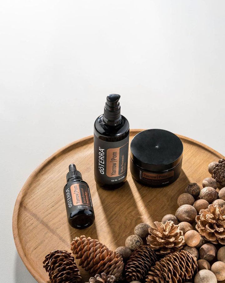 Yarrow|Pom Renewal Body Serum ist ein Serum voller bioaktiver Verbindungen, um Ihnen die beste Hautpflege und Schönheit zu bieten. Ätherisches Schafgarbenöl und kaltgepresstes Granatapfelkernöl wirken synergetisch und fördern eine gesunde Haut. Dieses Serum enthält außerdem ätherische CPTG™-Öle aus römischer Kamille, Yuzu, Pfefferminze und Cananga. Jojoba-, Sonnenblumen- und Traubenkernöl spenden tiefe Feuchtigkeit. Kaffeesamenextrakt und Granatapfelester helfen, Hautunreinheiten zu reduzieren, fördern die Leuchtkraft und verleihen der Haut das begehrte straffe, glatte, strahlende und strahlende Aussehen. Verwenden Sie dieses Serum bei einer Massage, um einen Moment der Entspannung zu genießen.