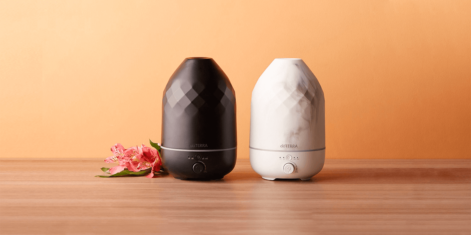 This beautiful dōTERRA Volo Ultrasonic Diffuser is the perfect addition to your home or office decor whether you choose it in onyx or marble finishes. Featuring a handcrafted polyresin lid, the Volo Diffuser features a diamond pattern and has 3 mood lighting settings: off, warm, or bright amber.