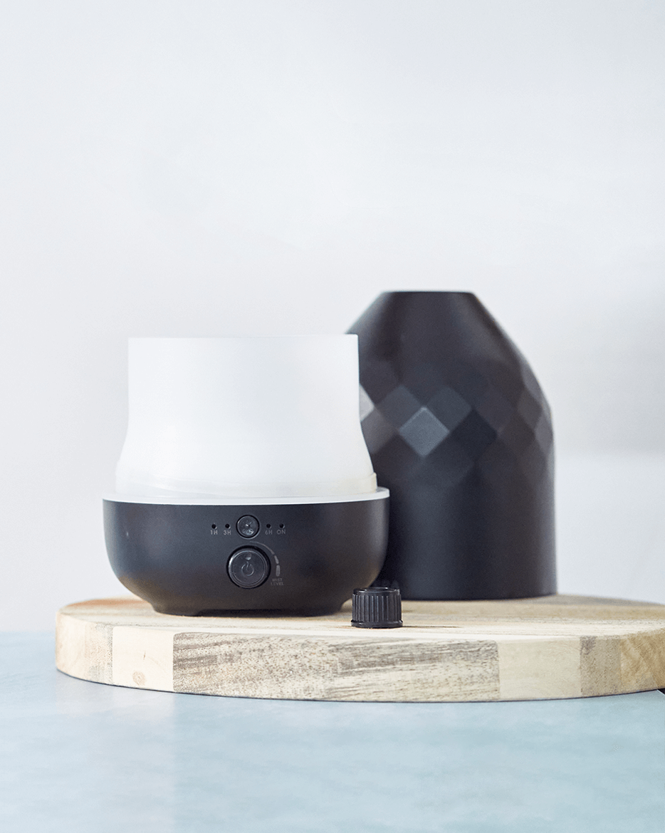 This unique device offers a mist diffusion with several duration settings allowing you to customize the release of essential oils into the air: 1, 3, 6 or 14 hours.