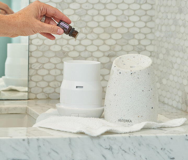 The doTERRA Roam Diffuser is crafted from natural polished stone , giving each piece a remarkable uniqueness. The rest of the diffuser is made from eco-friendly, post-consumer recycled resin , emphasizing its simple, natural elegance. Equipped with a powerful built-in rechargeable battery and charging station, the doTERRA Roam Diffuser offers you an unparalleled portable, cordless aroma experience—perfect for any room in your home or office!