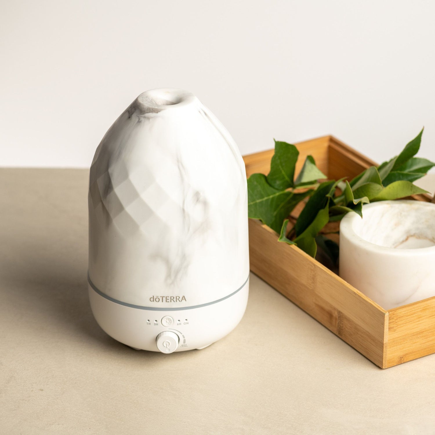 Meet the doTERRA Volo Ultrasonic Diffuser , an elegant centerpiece available in onyx and marble finishes. Perfect for any room in your home or office, the Volo Diffuser features a handcrafted polyresin lid and unique diamond pattern.