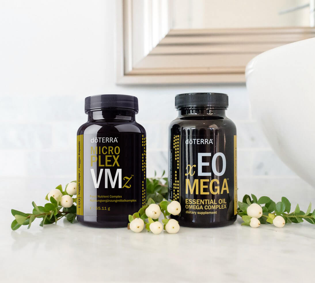 - xEO MEGA: The innovative formula of xEO Mega combines CPTG essential oils, marine omega-3 fatty acids and carotenoids. It contains EPA and DHA which contribute to the proper functioning of the heart. This dietary supplement provides the body with essential nutrients to specifically strengthen the health of the skin and joints.