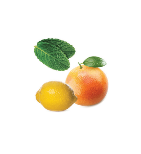 Pamplemousse, citron, menthe poivrée, gingembre et cannelle