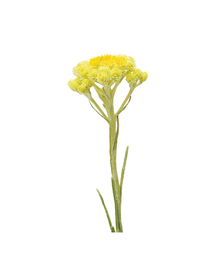 L'hélichryse est une petite plante qui pousse sur le pourtour méditerranéen, principalement en Corse et en Sardaigne. Elle tient son nom l’immortelle d’une de ses particularités : ses jolies fleurs de couleur jaune ne fanent jamais, même après la cueillette.